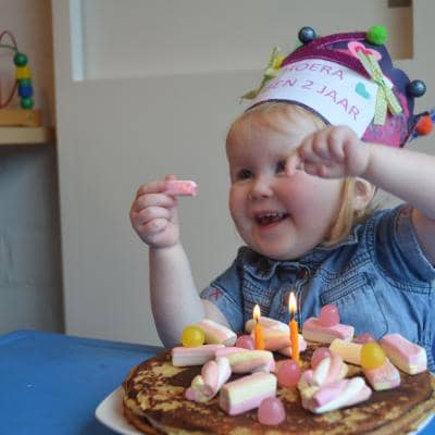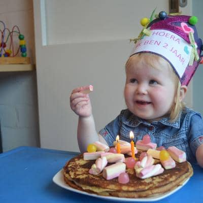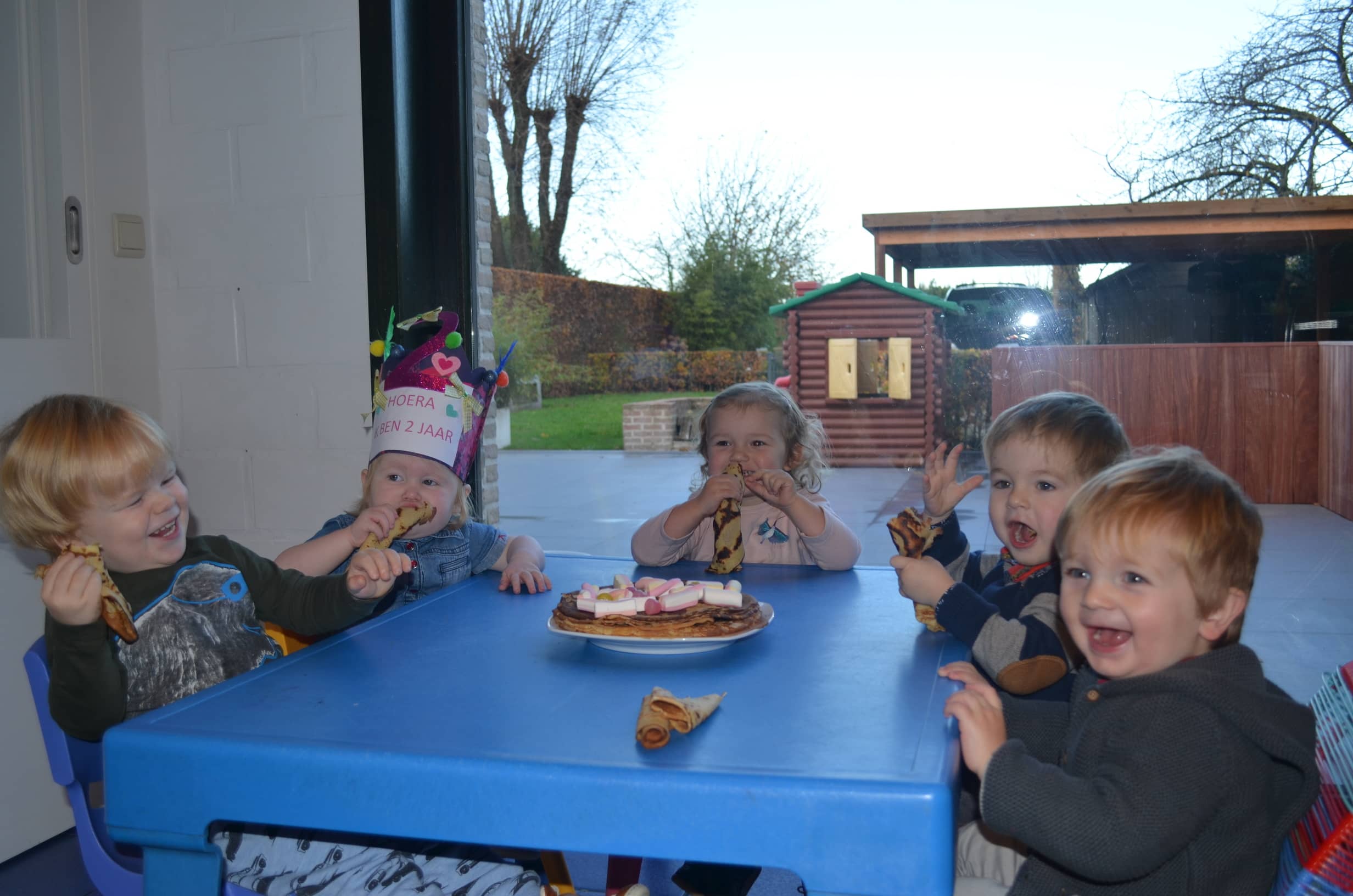 Ze trakteerde haar viendjes en vriendinnetjes met zelfgebakken pannenkoeken, de ark van Noah van playmobile en met bumbazakjes vol lekkers.