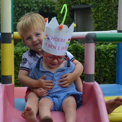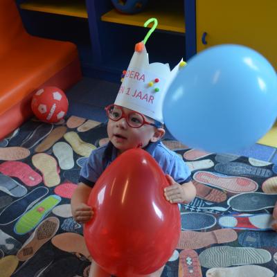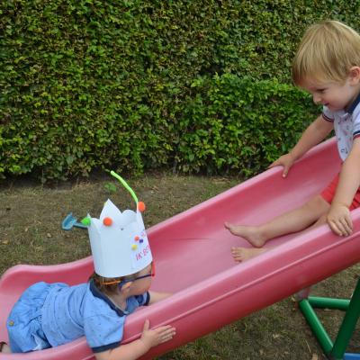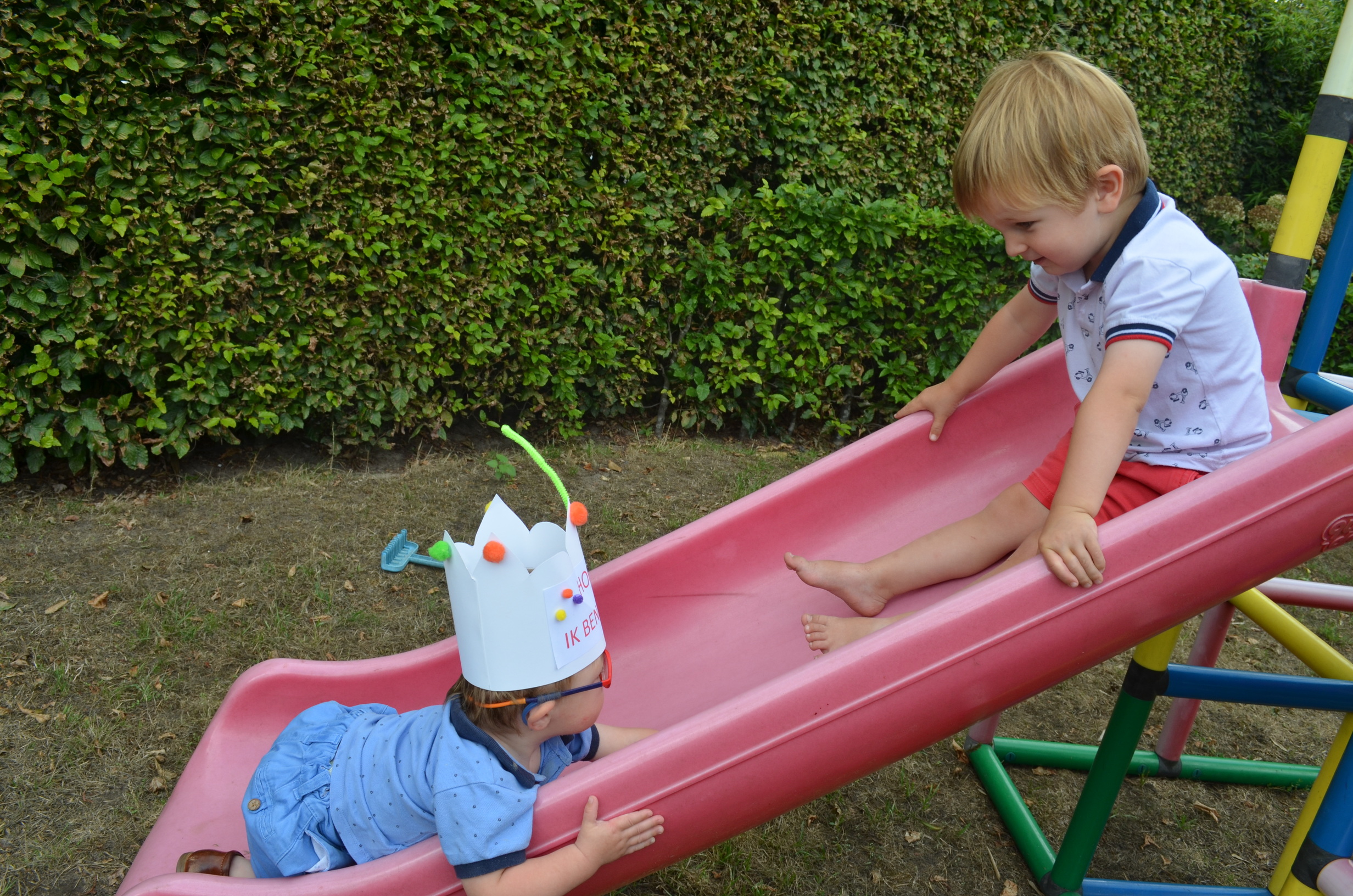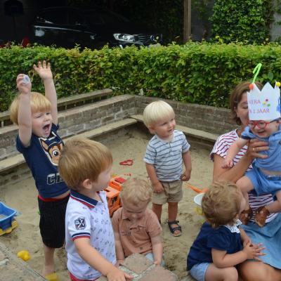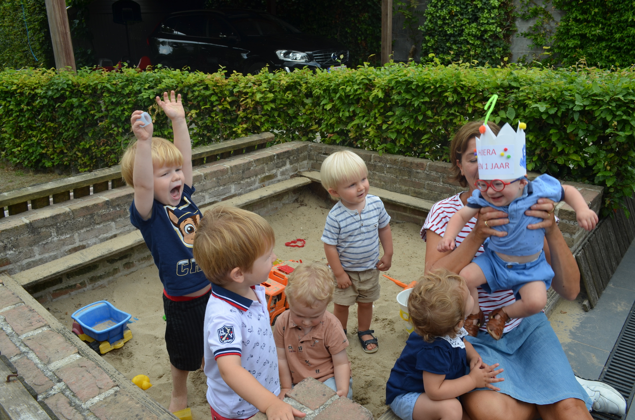 Briek wou feesten in de zandbak en kon er maar niet genoeg van krijgen. Ook de piratenboot met water had succes. Glijden van de glijbaan, gooien met ballonnen, spelen in het gras met tussenin de verjaardagsliedjes en spelletjes maakten van onze snoezeldag een heerlijke dag!