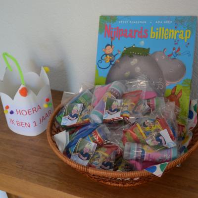 Alle vriendjes werden verwend met een mooie traktatie en een prachtig voorleesboek 'Nijlpaards Billenrap'. Een vrolijk verhaal gekregen van een vrolijke Briek! Dankjewel!