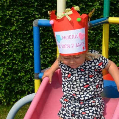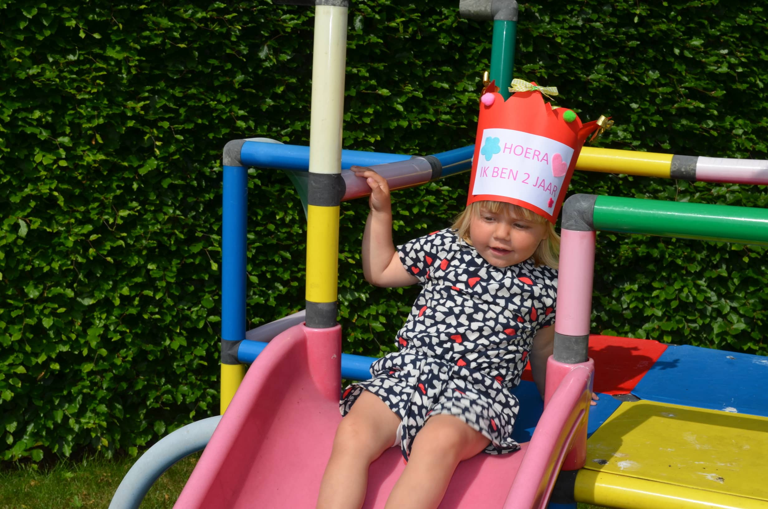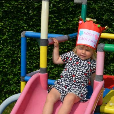 We maakten er een sportief dagje van met spelletjes in de tuin, tunnelkruipen en klimmen op de glijbaan.