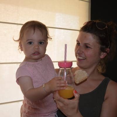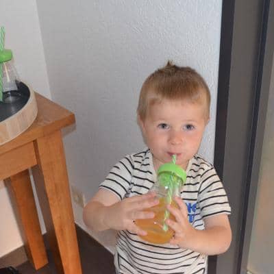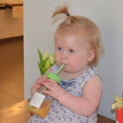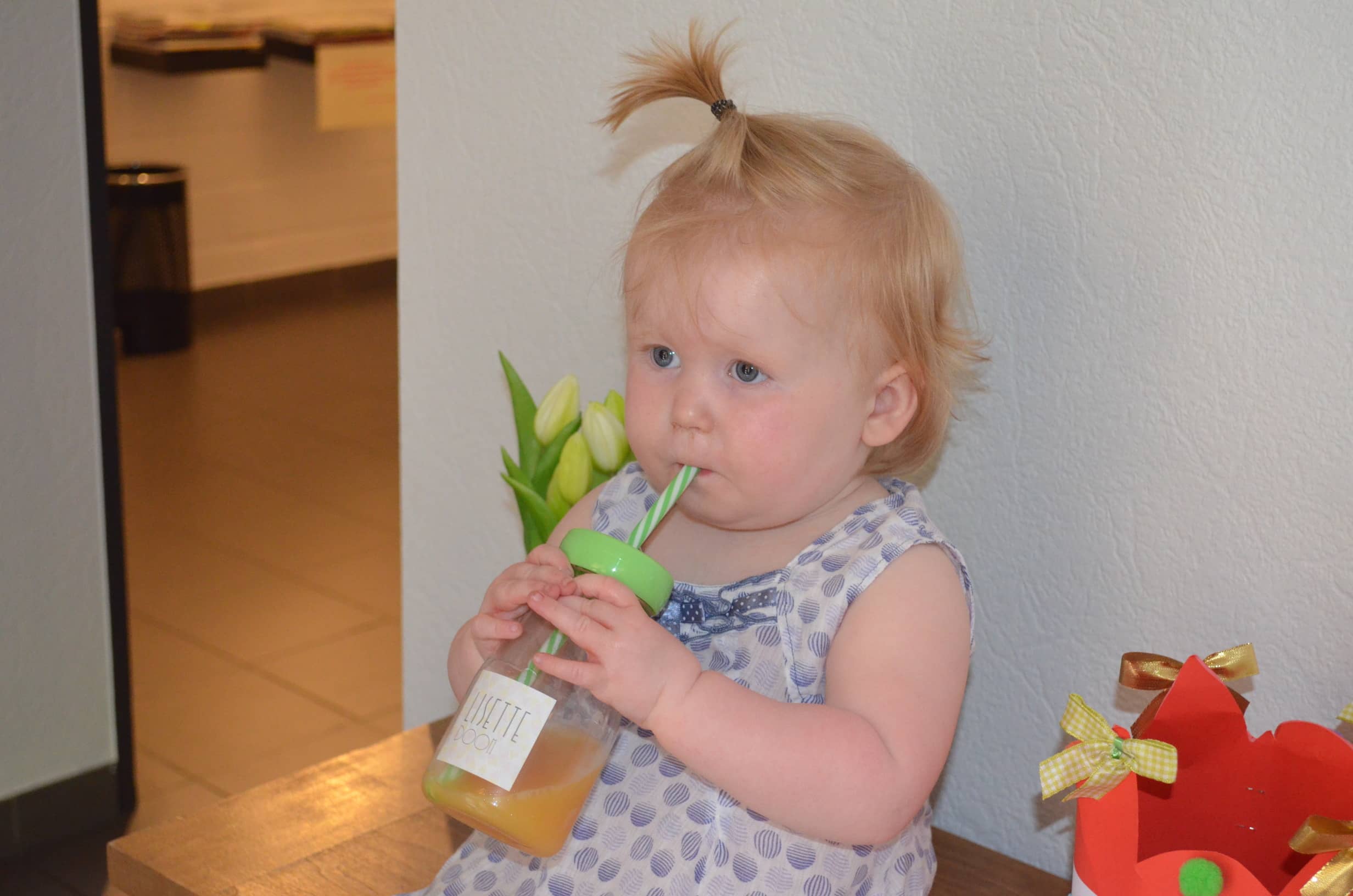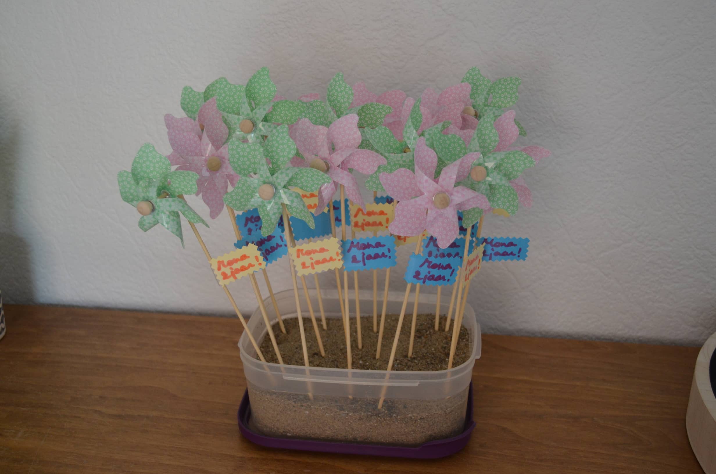 Ze verwenden alle snoezelaartjes met een superleuke traktatie: een windmolentje en een mooie drinkbeker met rietje én vruchtensap. Mmm.... keilekker!