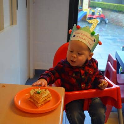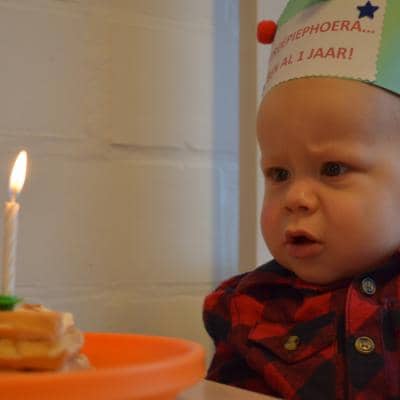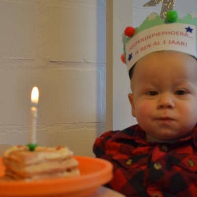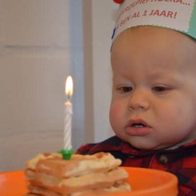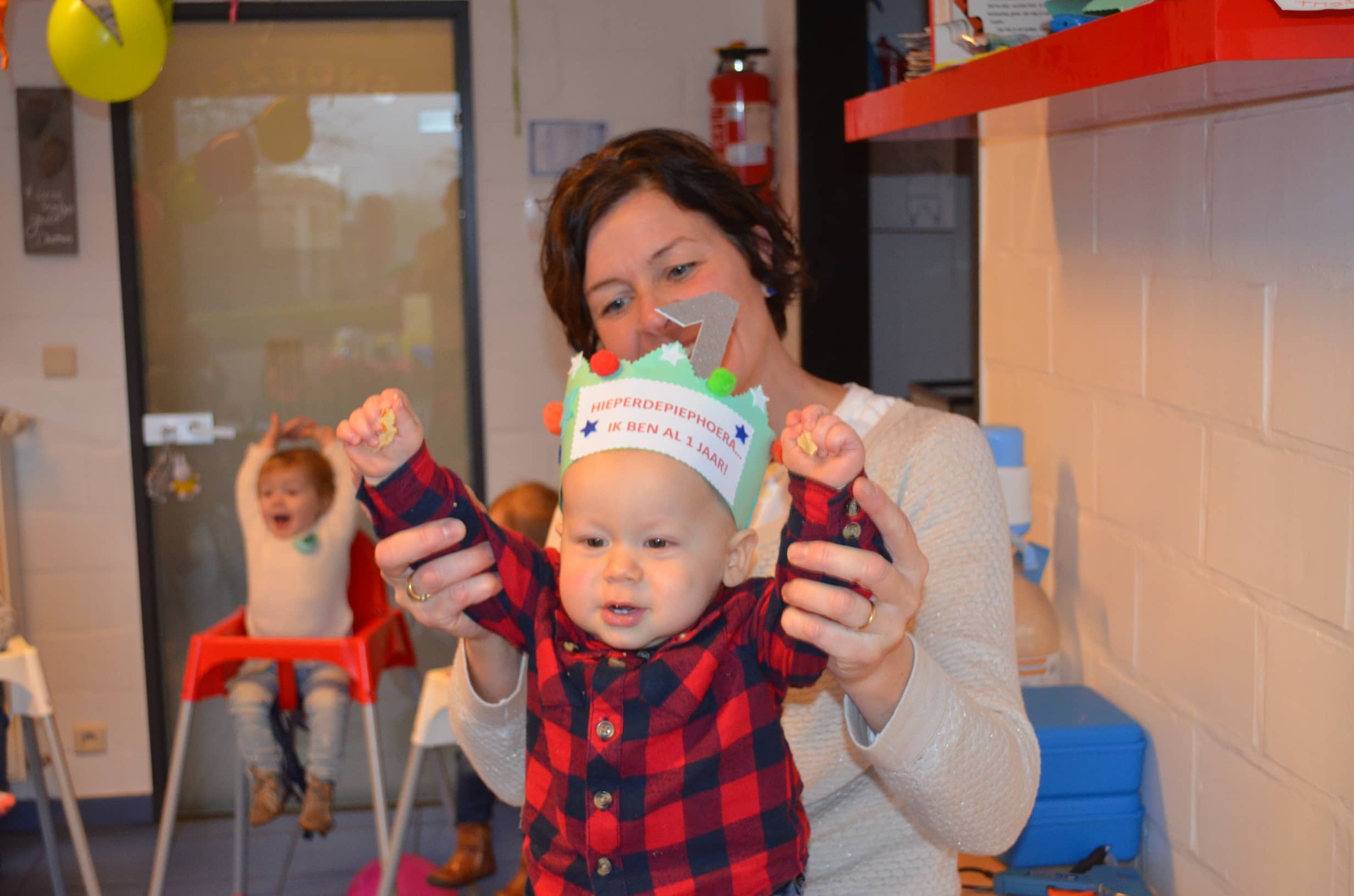 Tiele werd op 16 januari 1 jaartje jong: tijd voor liedjes à volonté! Tiele houdt ontzettend veel van zingen, klappen en handjes draaien. Hij kreeg er maar niet genoeg van. Hij trakteerde ons met heerlijk gebakken hartenwafeltjes en met een piratensurprise. Alle snoezelaartjes smulden de ganse namiddag van al dat lekkers.