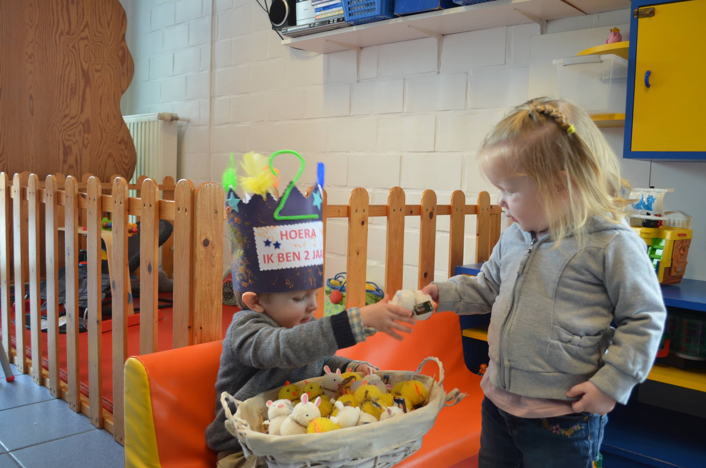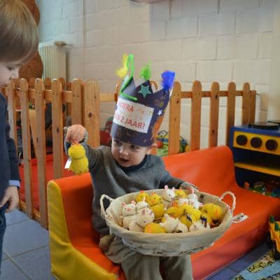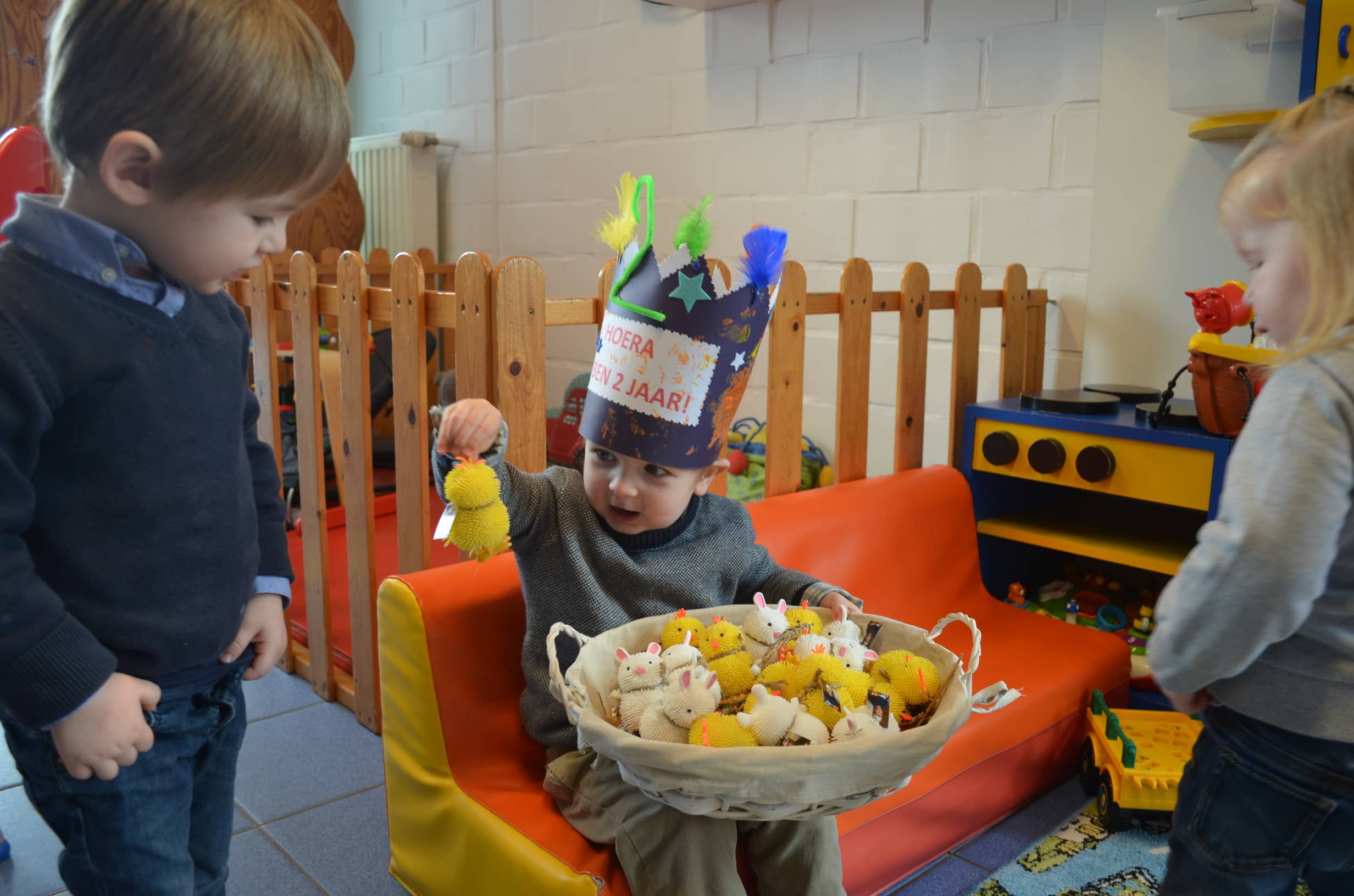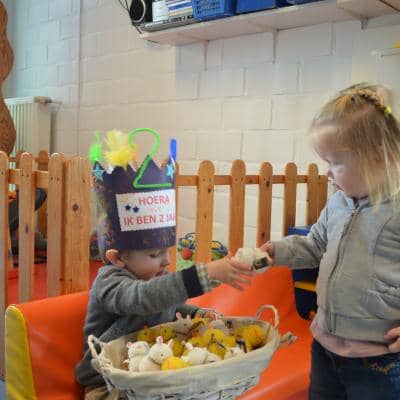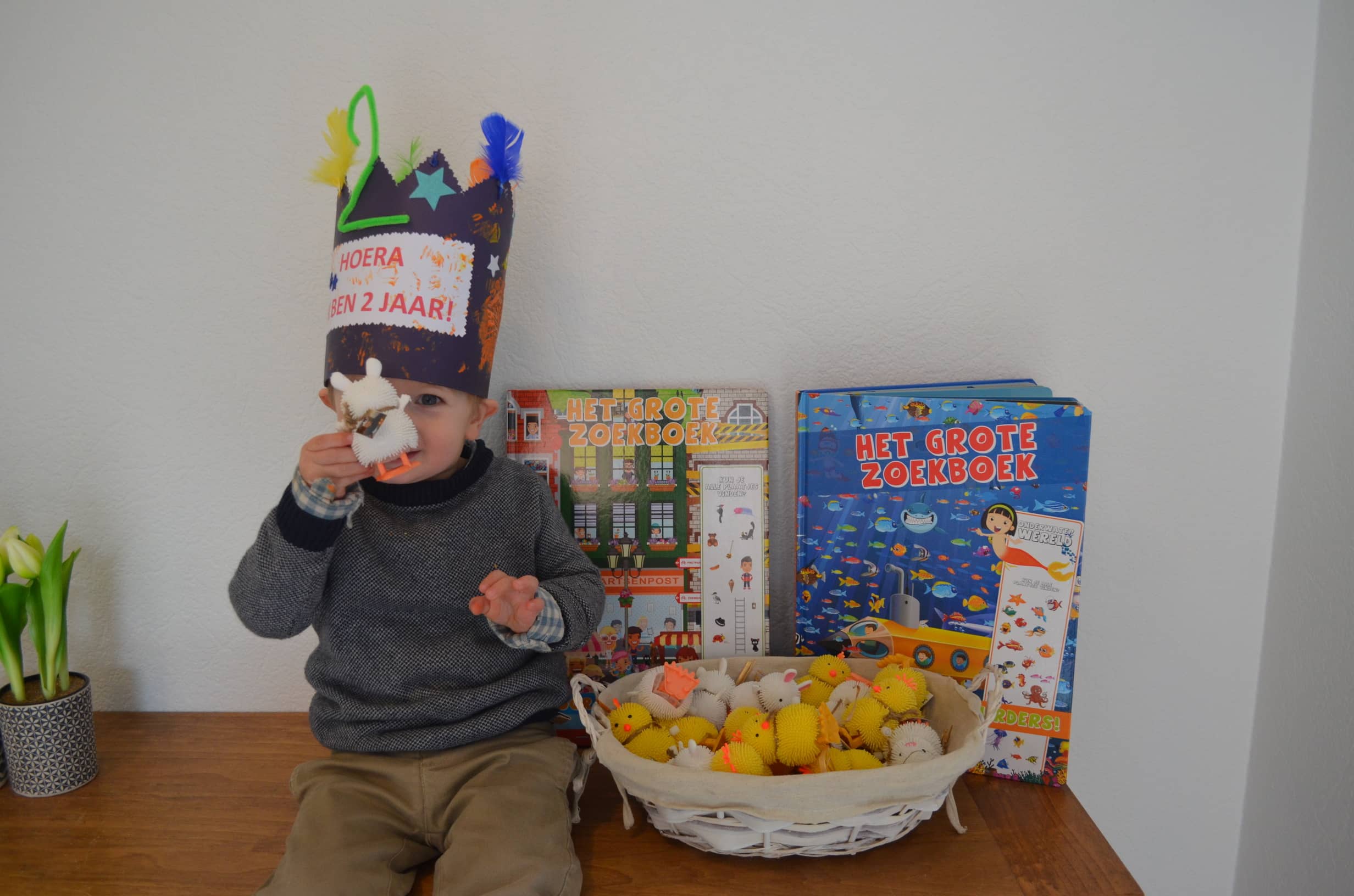 Stan werd in maart 2 jaar en trakteerde zijn snoezelvriendjes met gekke kuikentjes en konijntjes en twee grote zoekboeken.
