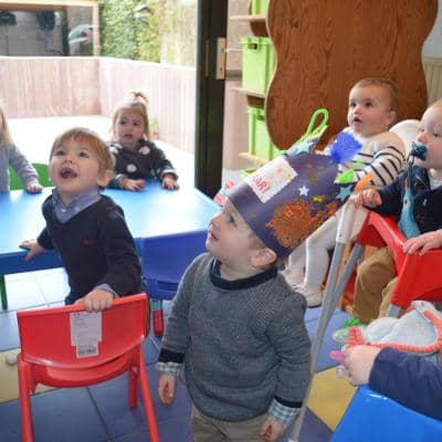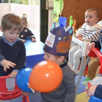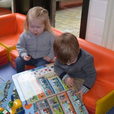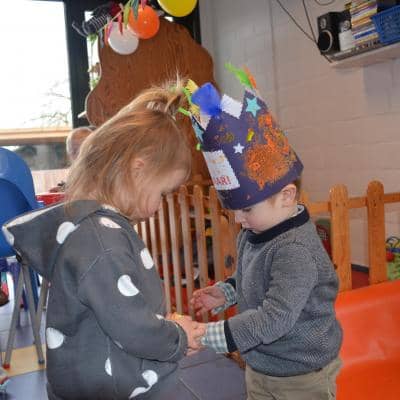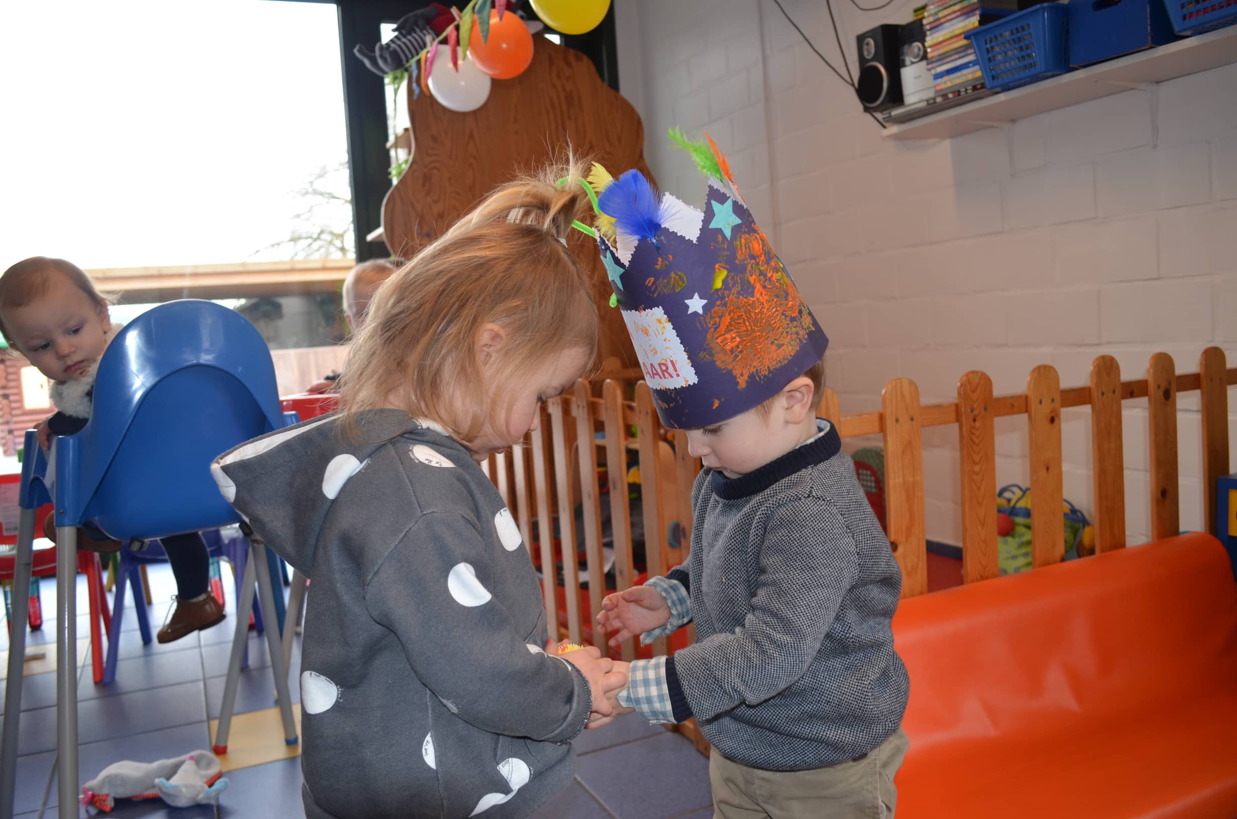 Zingen, zijn kroon schilderen, gezelschapsspelletjes, verhaaltjes beluisteren en samen zoeken in het grote zoekboek vonden ze reuzeleuk!
