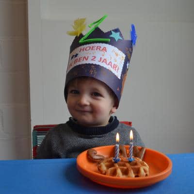 Hij blaasde fier zijn twee kaarsjes uit en genoot van een heerlijke verjaardags-dag in Snoezel.