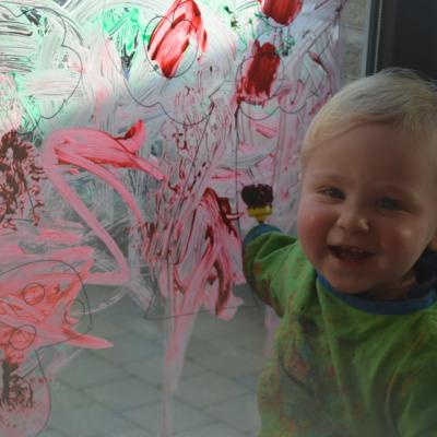 We mochten kiezen of we schilderden met een dikke borstel, een fijne borstel, een rollertje of een