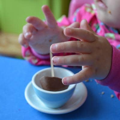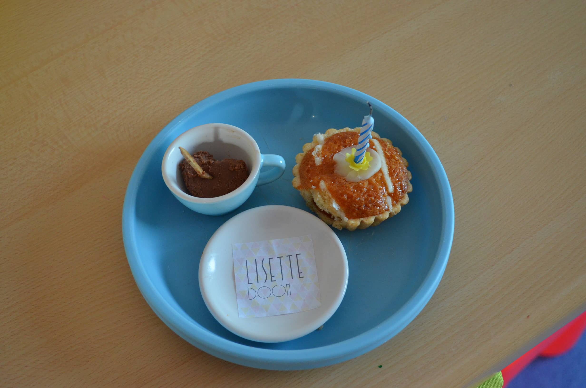 Lisette trakteerde op haar eerste verjaardag de ganse snoezelgroep met een liefdevol chocoladehartje in een kopje. Wat warme melk erbij en er toverde zich een heerlijk kopje chocolademelk tevoorschijn! Wat heerlijk zeg.