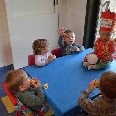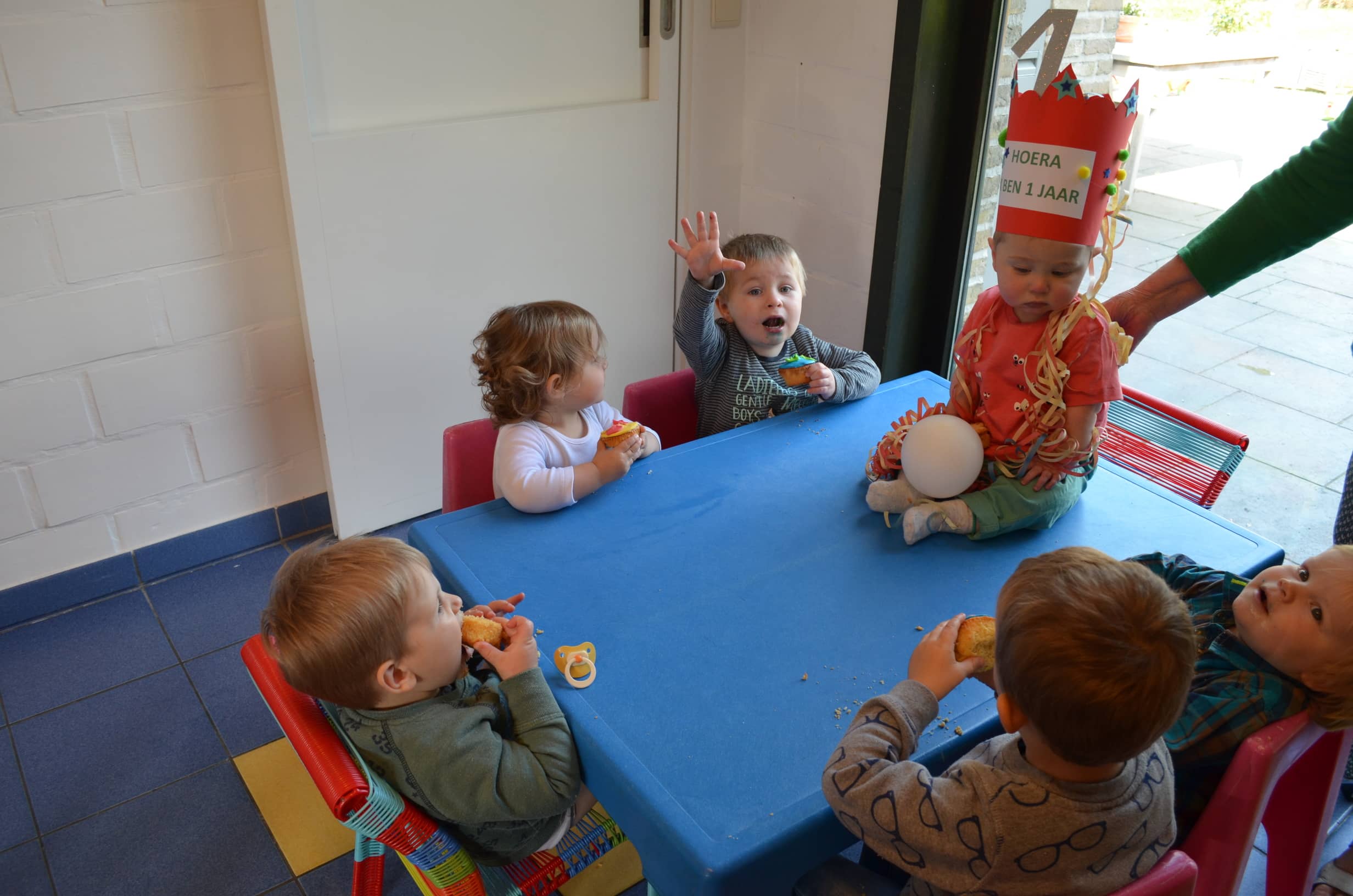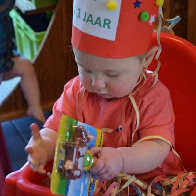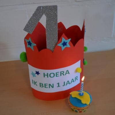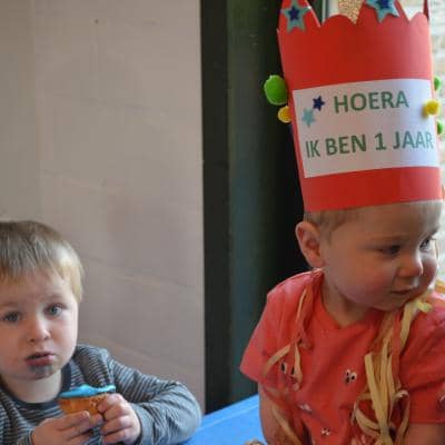 Het werd een leuk verjaardagsfeest met slingers, ballonnen, leuke liedjes en gekkebekken.