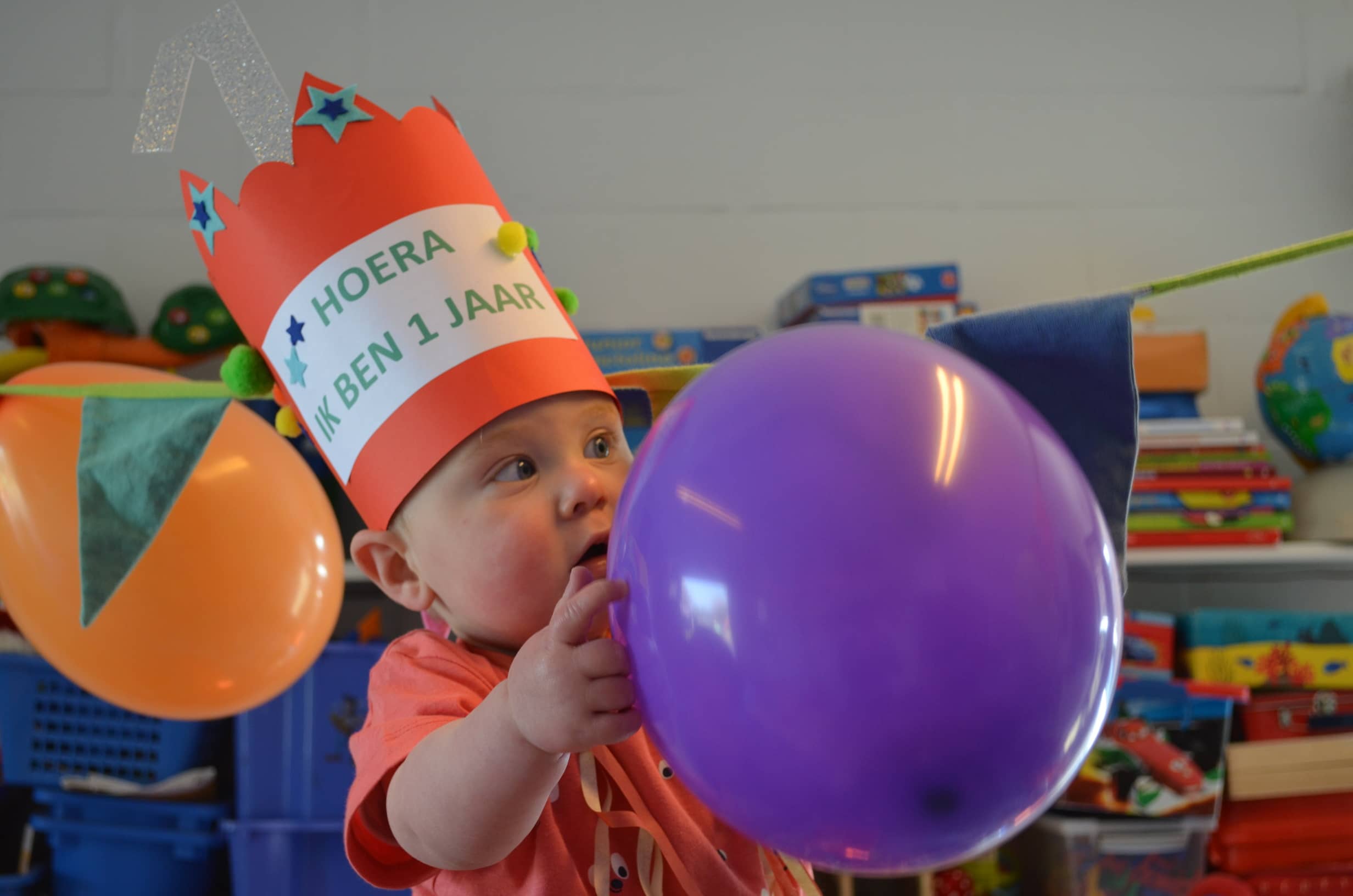 Ralphje was gek op de ballonnen en vond zijn allereerste feestje superfijn.