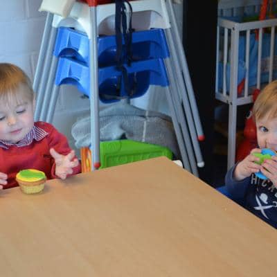 Hij trakteerde ons met een prachtige set playmobil 1-2-3, het lievelingsspeelgoed van alle snoezelaartjes.