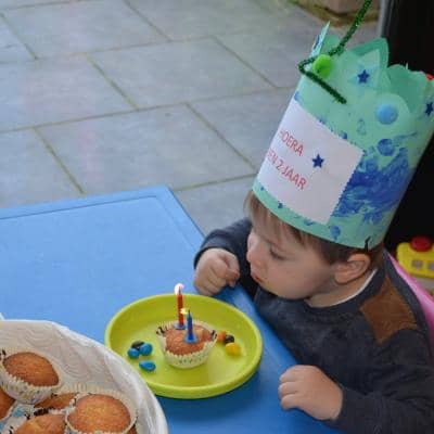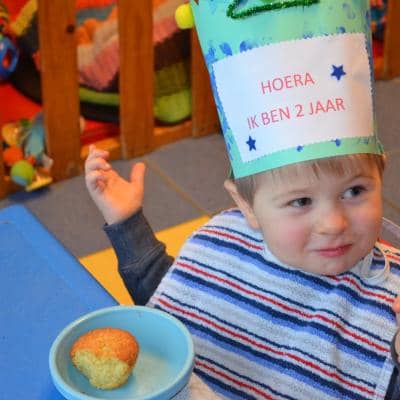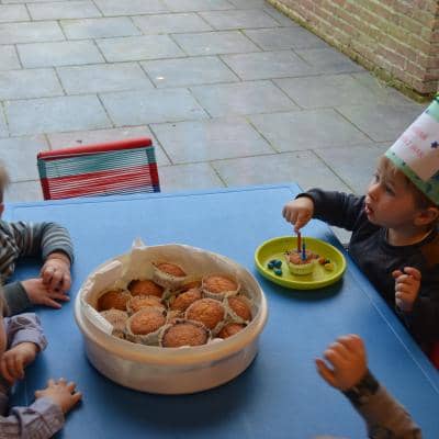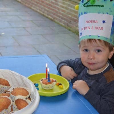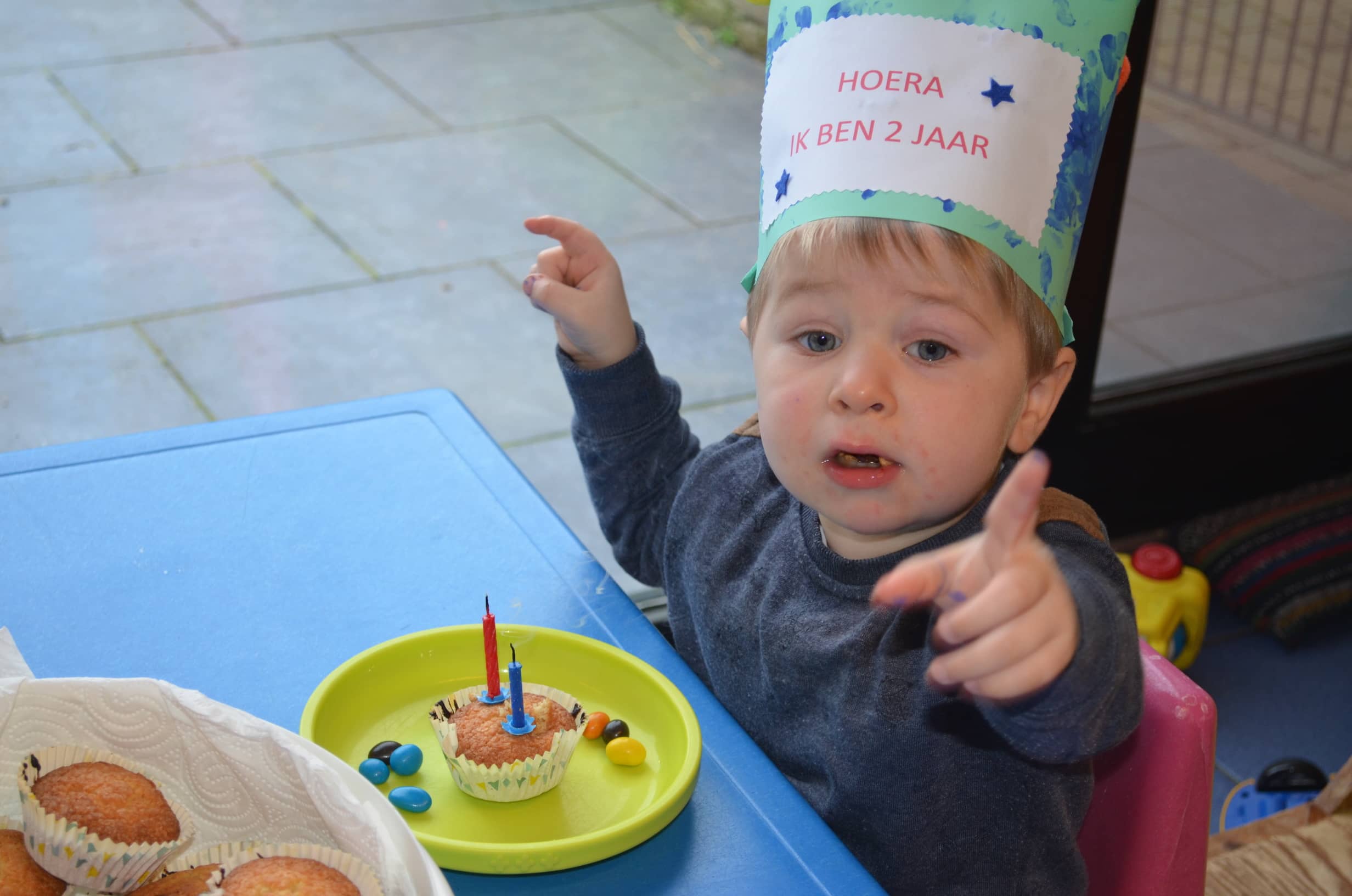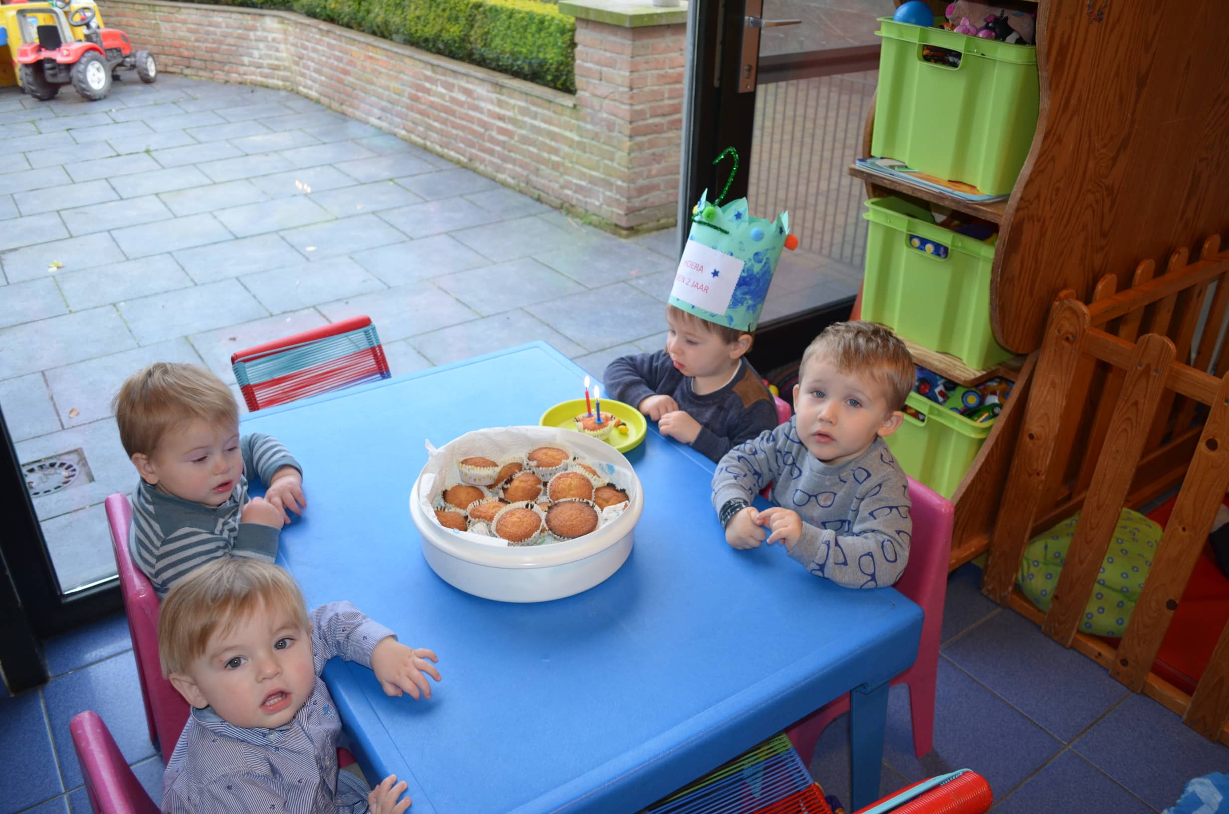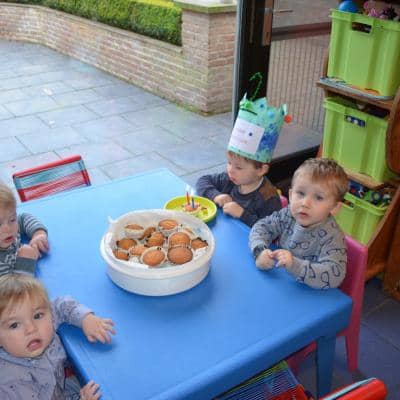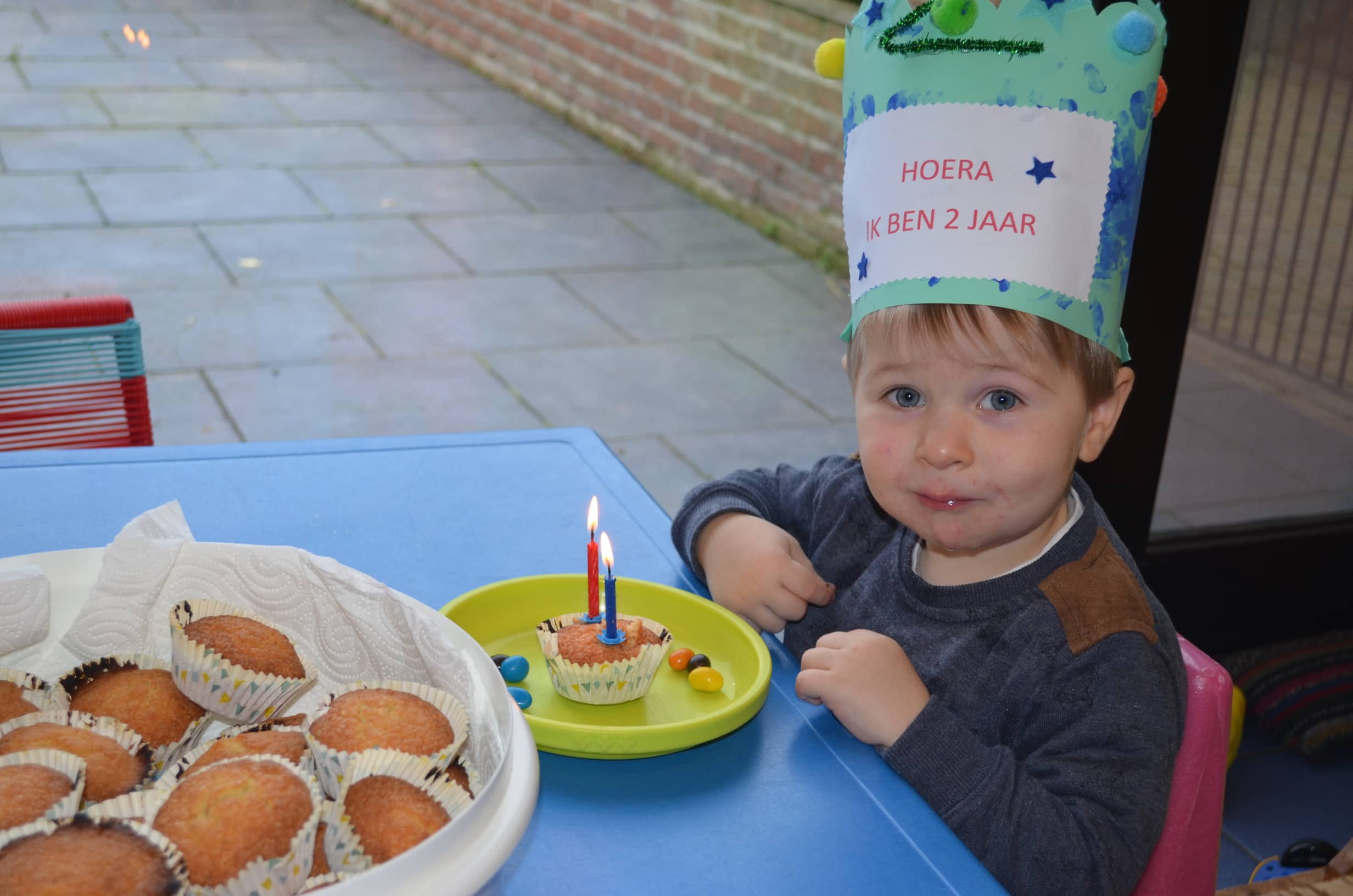 Tijd voor een feestje! Rune werd in de kerstvakantie 2 jaar. Hij trakteerde zijn speelkameraadjes met overheerlijke cakejes en leuke potjes boetseerklei. Het was opnieuw een supergezellige feestnamiddag. Rune was het feestvarkentje van de dag en genoot volop. We experimenteerden met de boetseerklei, speelden spelletjes, gooiden met de ballonnen en keken samen naar "peppa big is jarig". Iedereen vond het een kei-leuke namiddag.
