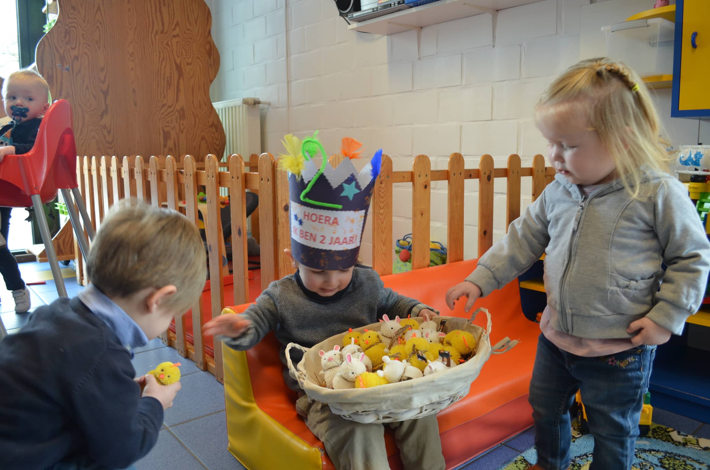 Stan werd in maart 2 jaar en trakteerde zijn snoezelvriendjes met gekke kuikentjes en konijntjes en twee grote zoekboeken.